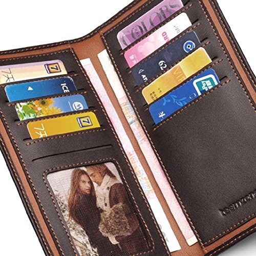 | Teemzone Genuine Leather Bifold Wallet Card Case Cash Receipt Holder Organizer |