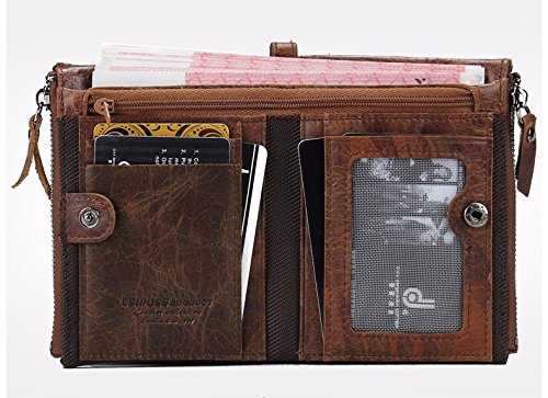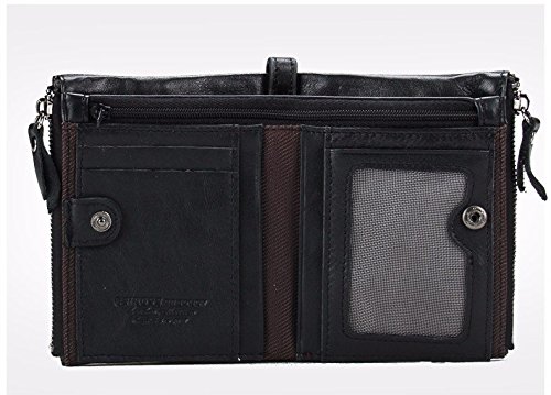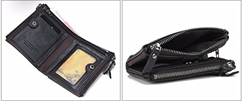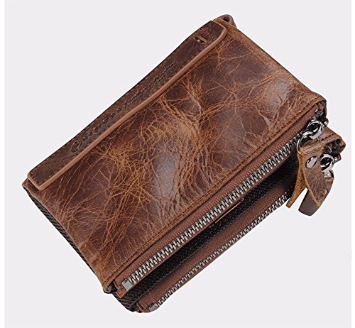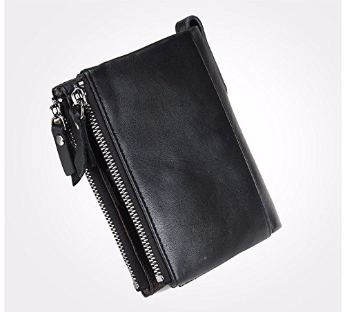 -. Title : Herren Geldbörse Echtes Leder-Bifold Wallet Doppelreißverschlusstasche Geldbeutel