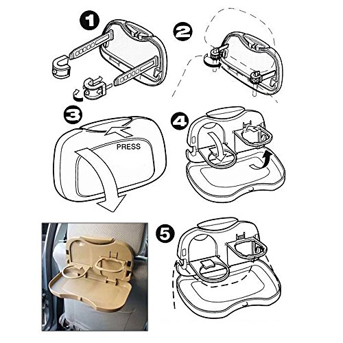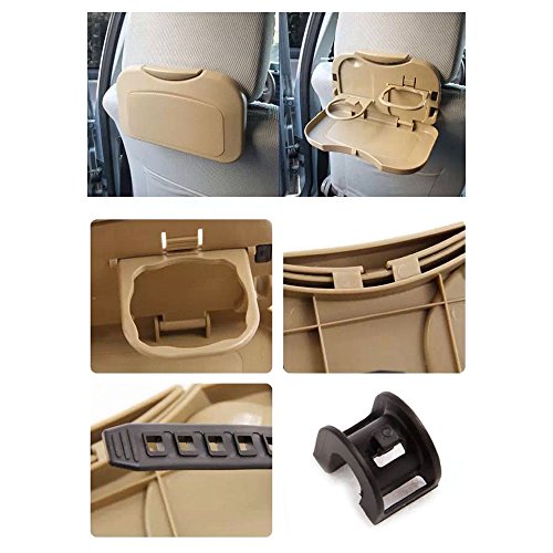 JAVOedge Beige Attachable Foldable Back Car Seat Drink Holder and Food Tray Plus Bonus Drawstring Storage Bag