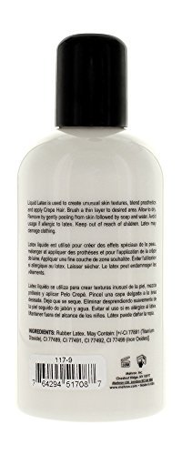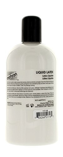 Latex Liquid is an essential component of every Special Effects Makeup Artist throughout the entertainment industry. The uses for Latex Liquid are only limited by the imagination of the artist using it. Special Effects Artists throughout the world use Latex Liquid to create fake skin, wrinkles, alien features and even to apply Crepe Hair and theatrical prosthetics. This 1 oz bottle of Latex Liquid comes with a brush for easy application. Creating a Character is a easy task when you use the tools, accessories and makeup used by the Professional Makeup Artist. You can now buy the same high quality Latex Liquid made by Mehron, Leaders in Theatrical Makeup since 1927, that the professionals use throughout the world on movie sets, video shoots and stage performances.Feature