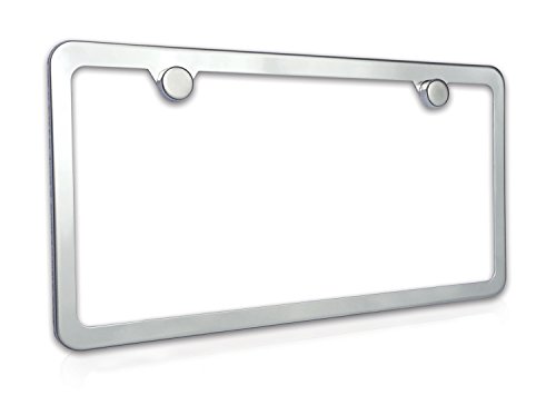 Custom made 2 hole premium high polished SAE 304 stainless steel license plate frame, screws, and special SAE 304 stainless steel Anti-Theft style screw covers. This kit provides a gorgeous and sleek finish to any vehicle while complying with state laws regarding frames that obstruct view of the words or registration on your license plate. This kit aggressively RESISTS THEFT, heavy duty chemical, petrochemical, acidic and environmental contaminants.