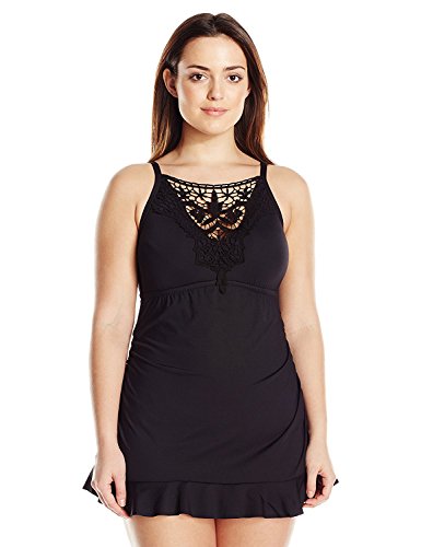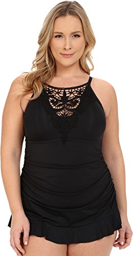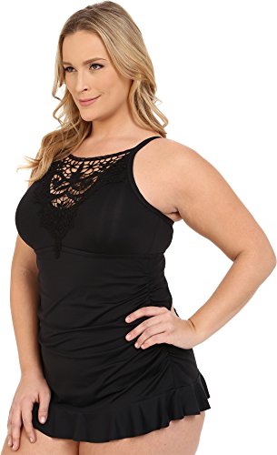 BECCA ETC Women's Plus Size Venise One Piece Swimsuit with Lace Applique