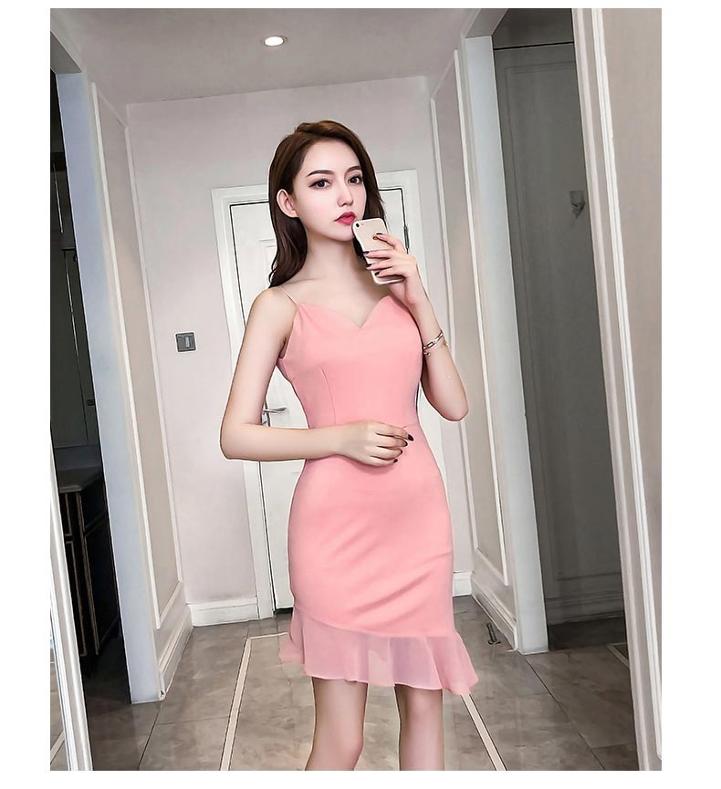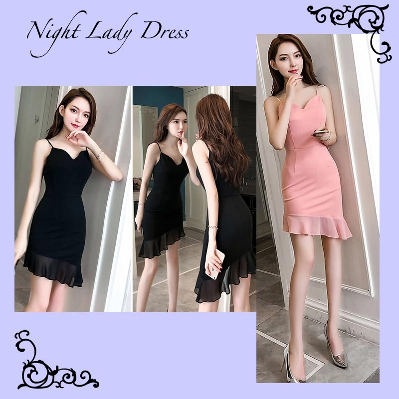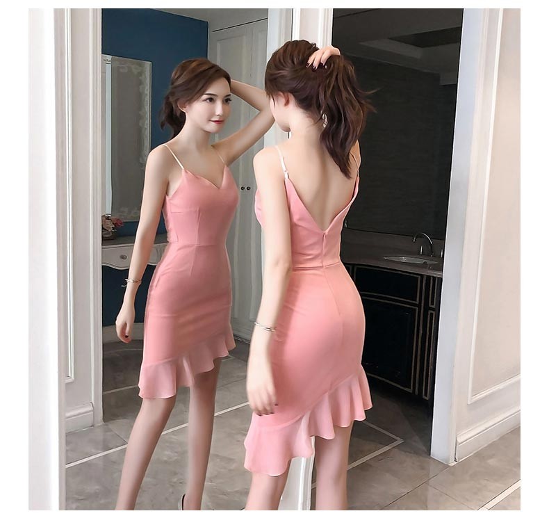 裾が斜めになったアシンメトリーで背中が深く空いたスリングドレスです。♪