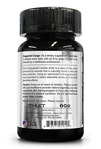 -. Binding : Health and Beauty -. Brand : Athlet -. EAN : 0816571019422 -. Feature : Athlet Myo-Leptin CLA 30 Softgels / Satisfaction Ensured / Great Gift Idea / Exercise and dieting support -. IsAdultProduct : 0 -. Label : Athlet -. LegalDisclaimer : This information is intended for your general knowledge only and is not substitute for professional medical advice or treatment for specific medical conditions. This information is not intended to diagnose, treat, cure or prevent any disease. Always seek the advice of your qualified physician or other health care provider with any questions you may have regarding a medical condition. Keep out of reach of children. -. Manufacturer : Athlet -. MPN : 0816571019422 -. NumberOfItems : 1 -. PackageQuantity : 1 -. PartNumber : 0816571019422 -. ProductGroup : Health and Beauty -. ProductTypeName : HEALTH_PERSONAL_CARE -. Publisher : Athlet -. Studio : Athlet -. Title : Myo-Pure CLA 2000 mg 30 Softgels - Weight Loss Fat Burner Diet Enzyme Energy Endurance Recovery Conjugated Linoleic Acid -. UPC : 816571019422