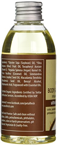 Give your skin intense hydration with the Body Oil from Petal Fresh. Infused with Argan Oil, the body oil absorbs quickly without leaving a greasy feel. Petal Fresh is an affordable, healthy choice because it uses high quality standards and natural ingredients to cleanse, nourish and produce healthier, more attractive hair and skin without using harsh chemicals.Feature