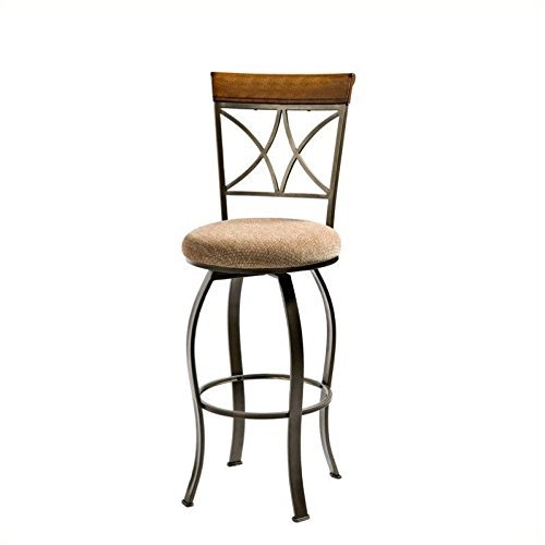 -. Feature : Optional swivel designed top for easy use / Seat upholstered in a diamond pattern taupe/beige fabric ? 100% polyester / "Brushed Faux Medium Cherry" Wood / "Matte Pewter and Bronze" Metal / Some assembly required