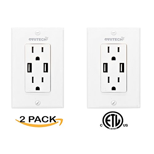OviiTech 2.4 AMP Dual Smart High Speed Wall Mount Charger USB Outlet,15A Tamper Resistant Receptacle,Wall Plate with Screw,2 Pack, White