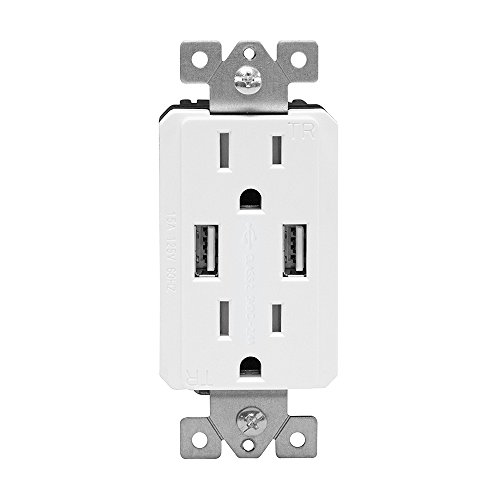 - 15A Tamper Resistant receptacles with wall plate increases safety, preventing objects from being inserted into the USB outlet.