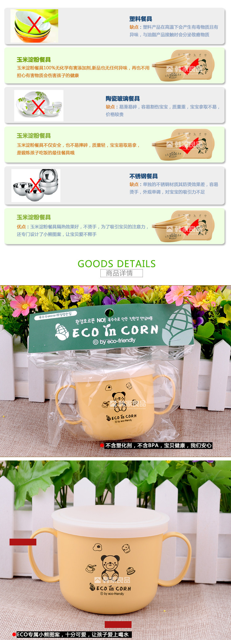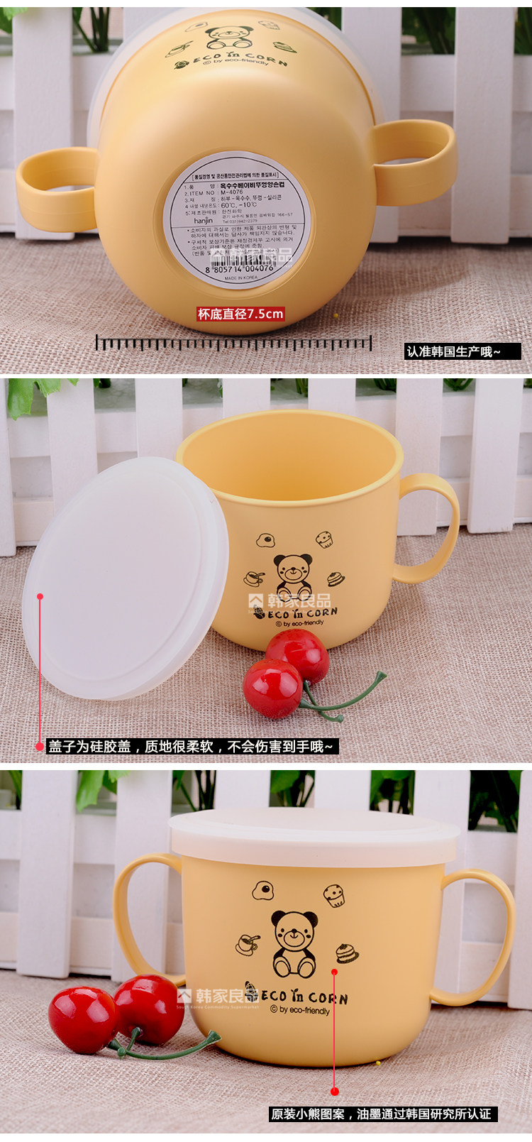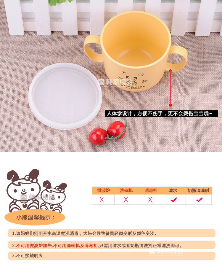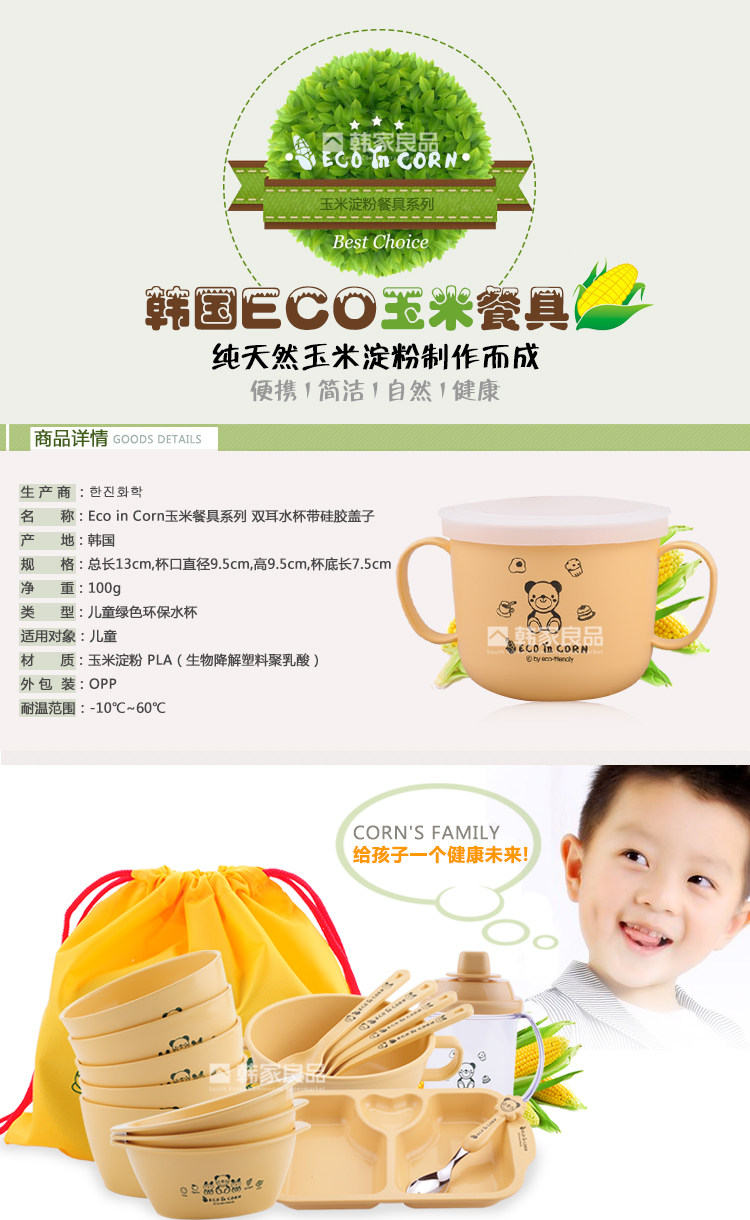 韩国正品 ECO IN CORN玉米材质儿童双把手抓杯 水杯 汤碗带硅胶盖