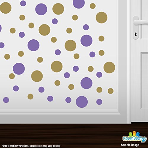 Set of 30 - Lavender / Metallic Gold Circles Polka Dots Vinyl Wall Graphic Decals Stickers