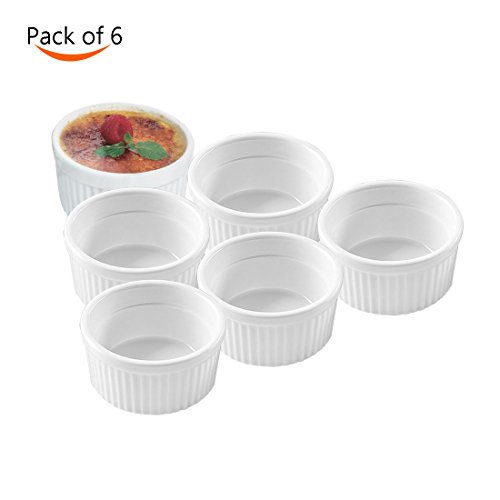 6 Pcs Round Fine Porcelain Safe Baking Dish Ramekin for Dessert Souffle, 3.5 Inches (White)
