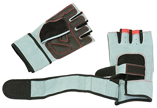 -. Feature : Perfect for cycling and weightlifting or any other Gym workout. / Thick tough slip-resistant pad for palm and fingers with reinforced key contact points on the palm. Double Stitching for extra strength. / Four-way Stretch Spandex between fingers for extra flexibility and breathable stretch Lycra fabric on the back of the hand, to help the movements of knuckles. / Attractive design. Durable long lasting synthetic Amara leather. / Complete wrist wrap and an adjustable strap with a steel loop in the back for a snug fit.