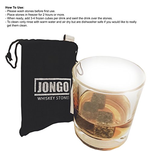 How To Use: - Please wash stones before first use. - Place stones in freezer for 2 hour or more. - When ready, add 3-4 frozen cubes per drink and swirl the drink over the stones. - To clean--only rinse with warm water and air dry but are dishwasher safe if you would like to really get them clean. Note: These chilling cubes will not get your drink as cold as ice because they are only designed to bring the temperature down around 5 -10 degrees at a time. That is the optimum temperature for most wines and whiskey drinks. If you want it cooler you may add more whiskey stones. please do not shake your drink violently,if this stones in your glass Package List: 10 x 100% soapstone whiskey stones. 1 x Stainless Steel Tongs. 1 x Velvet Freezer Storage Bag. Tips: Our whiskey stone gift set is perfect for any occasion! 0 |