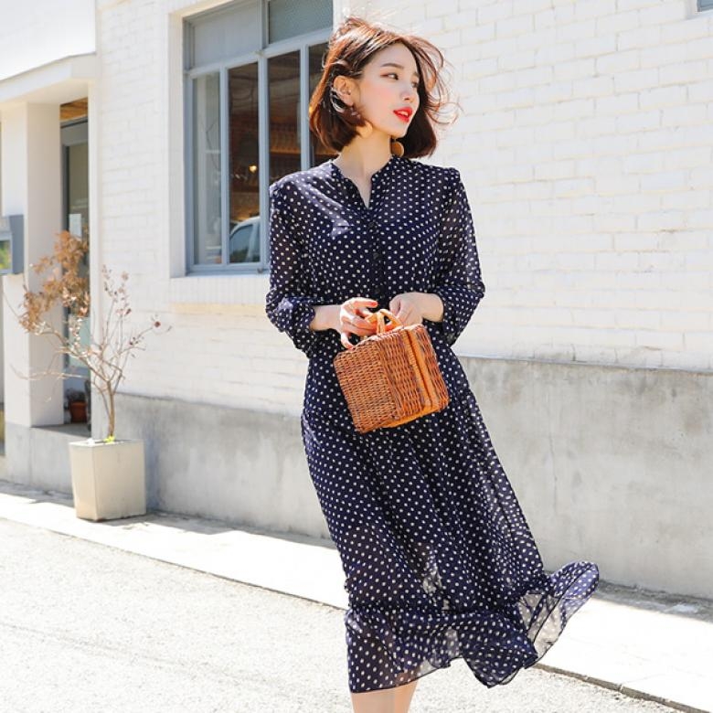 화사한 분위기 가득한 도트 패턴 원피스 아이템! 샤랄라한 실루엣으로 여성스럽게 즐기기 좋습니다