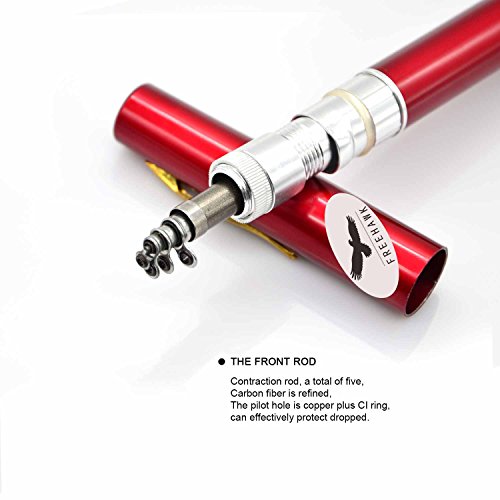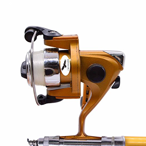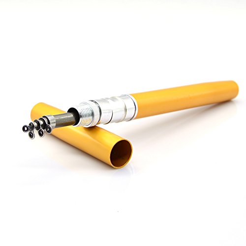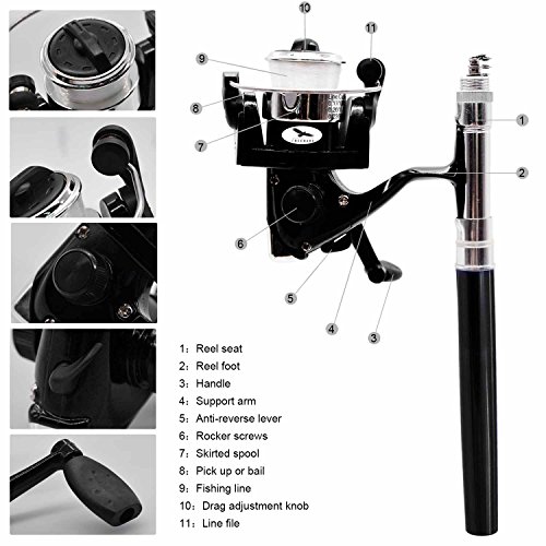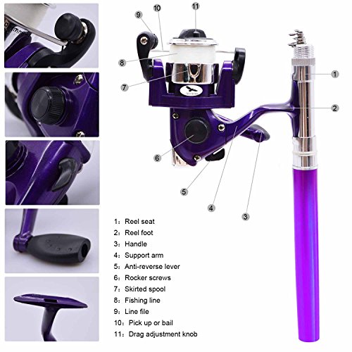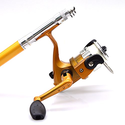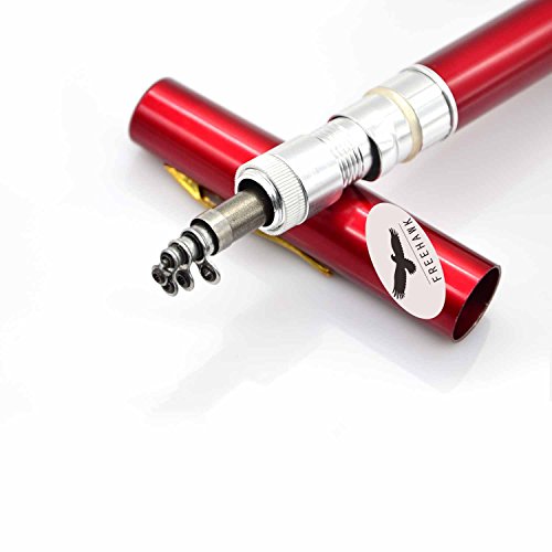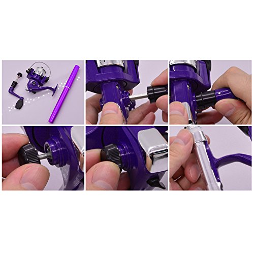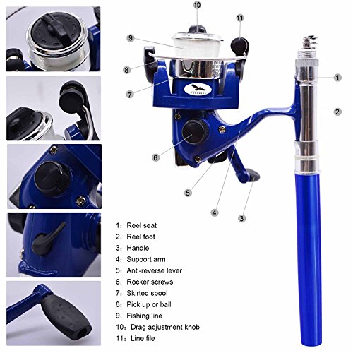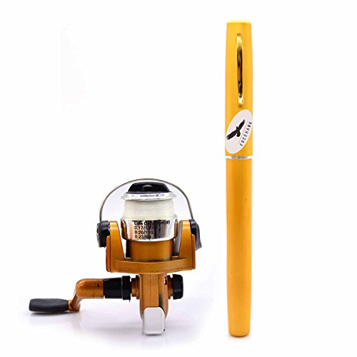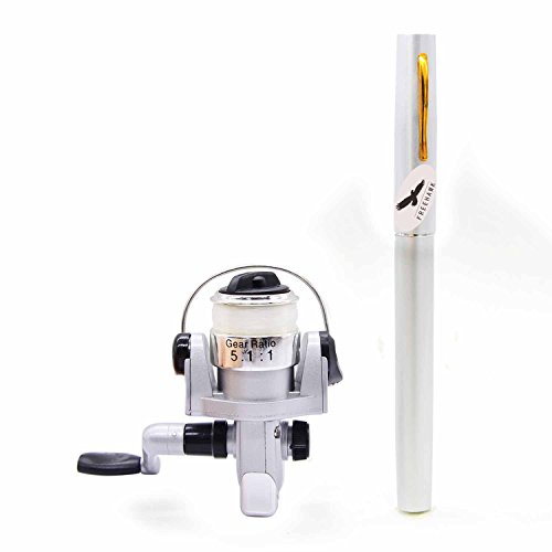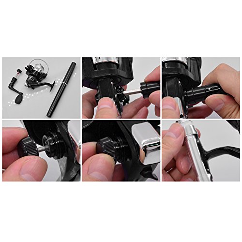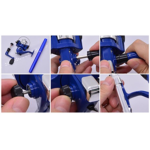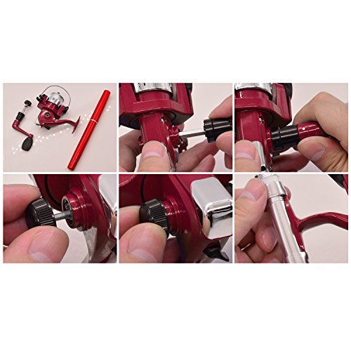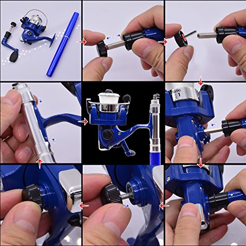 Great Entertainment: Fishing is relaxing and something you enjoy doing with others. It is a great way to renew an old friendship or build a father-son relationship. Get together with a group of people and creat memories of a lifetime. Operation: 1. Insert the reel foot to the fixing foot of the rod. 2. Screw down the nut besides the fishing foot of the reel. 3. Pull out the rod and fix it. Specification: Type: Pen Fishing Rod HIG 2000 Spinning Reel(with fishing line of 50m/1968.5in) Material: Fiberglass, aluminum alloy Color: Silver, Blue, Red, black and gold Net Weight: 167g Pen Fishing Rod Closed length: 21cm /8.27in Extended length: 100cm / 39.4in Weight: 65gr HIG 2000 Spinning Reel Material: Aluminum alloy Grer Ratio: 5.1:1 Wheel Length: 10cm Wheel Width: 10cm Line Spooling Capacity: 0.17mm/130m; 0.20mm/110m; 0.23mm/90m Line Length: 50m Package Included: 1x Pen Pocket Fishing Rod 1x Fishing Reel (Including fishing line approx 50m) 0