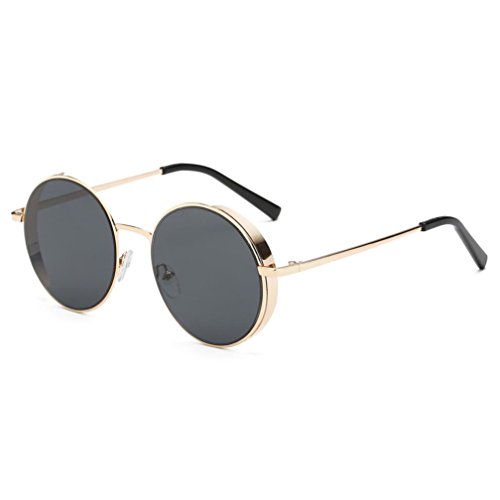 ①?Round Metal Frame Glasses Steampunk Vintage Circle Sunglasses for Men and Women Vintage Inspired Horned Rim Metal Bridge P3 UV400 Clear Lens Glasses Large Oversized Metal Frame Clear Lens Round Circle Eye Glasses