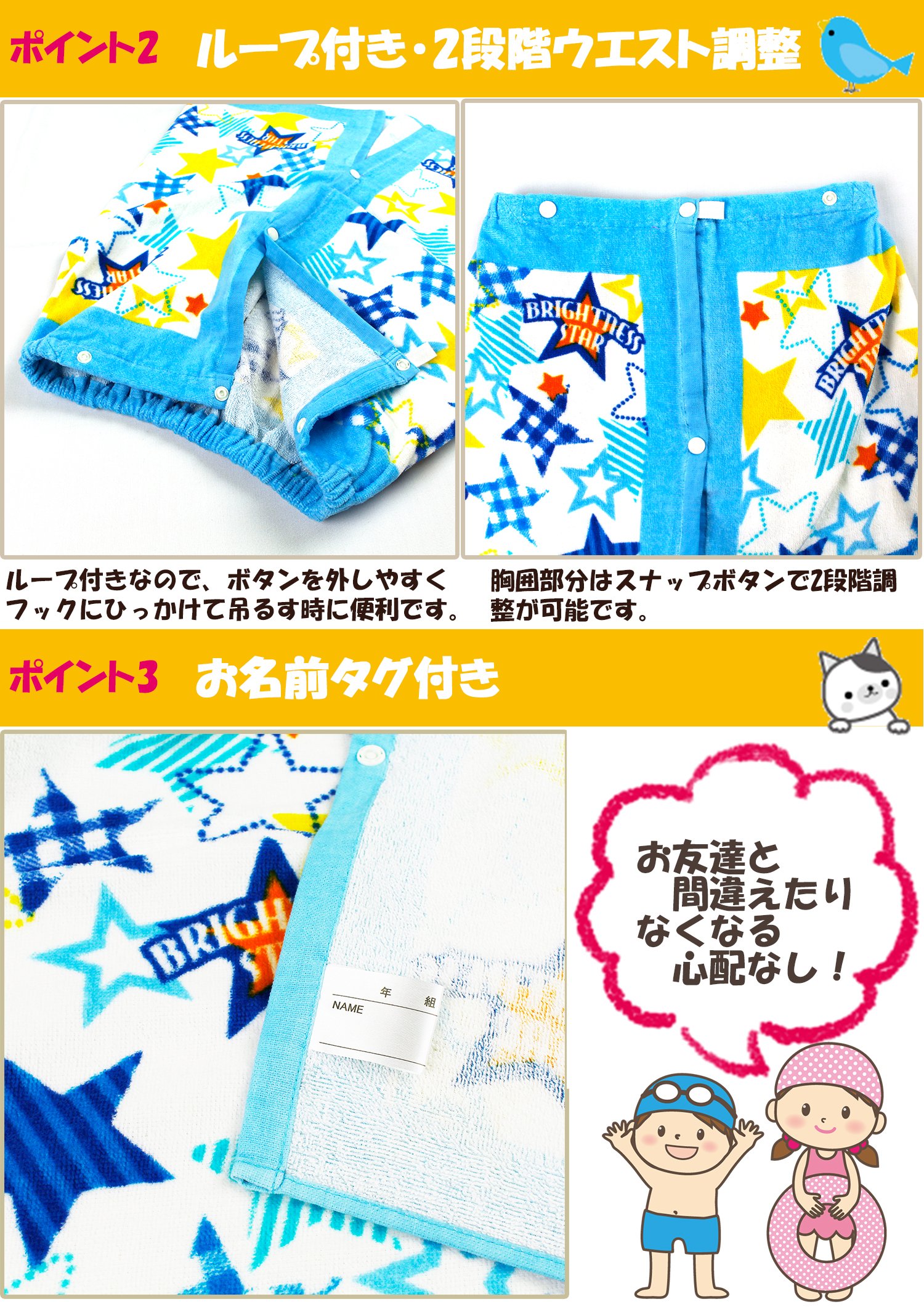 ● As a change towel, a convenient lap towel before and after swimming