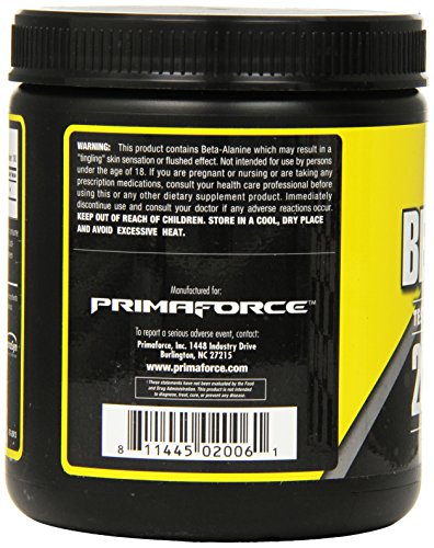 ReleaseDate : 2015-06-22 Studio : Primaforce Publisher : Primaforce Binding : Health and Beauty Product Description Primaforce beta-alanine is lab-tested for potency and purity and can help: support increased performance and lean mass gains; increase intracellular carnosine levels thus delaying fatigue and metabolic acidosis; support increased muscular endurance for more productive workouts. These statements have not been evaluated by the food and drug administration. This product is not intended to diagnose, treat, cure, or prevent any disease. Made in usa. 0