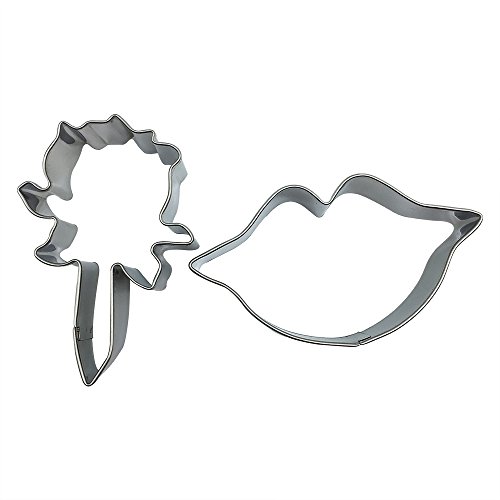 Mziart Beautiful Rose and Sexy Lip Stainless Steel Cookie Cutter Set of 2 Fondant Cutter Metal Cookie Molds for Anniversary Birthday Wedding Party