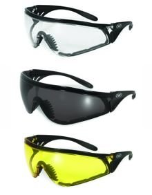 Set of 3 PAIRS: PADDED MOTORCYCLE RIDING GLASSES - DAY NIGHT DAWN DUSK SMOKED CLEAR YELLOW Shatterproof Polycarbonate Lenses UV400 Filter for Maximum UV Protection Scratch Resistant Coating