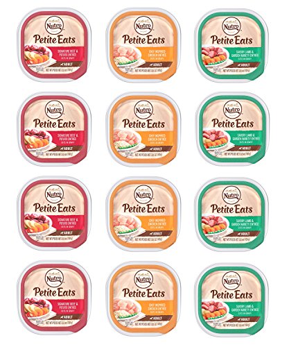 -. Binding : Misc. -. Brand : Petite Eats by Nutro -. EAN : 0645905961218 -. Feature : Contains 12 3.5-oz. cans of natural small breed adult dog food / Made with real chicken, beef or lamb and chunks of natural vegetables to please even finicky eaters / Contains optimal levels of omega-6 fatty acid and zinc for healthy skin and coats / No artificial colors, flavors or preservatives / Made in the U.S.A. -. Label : Petite Eats by Nutro -. Manufacturer : Petite Eats by Nutro -. PackageQuantity : 1 -. ProductGroup : Pet Products -. ProductTypeName : PET_SUPPLIES -. Publisher : Petite Eats by Nutro -. Studio : Petite Eats by Nutro -. Title : Nutro Canned Small Breed Adult Dog Food 3 Flavor Variety Pack (4) Chef Inspired Chicken Entree, (4) Signature Beef & Potato and (4) Savory Lamb & Garden Variety, 3.5 Oz Each (12 Trays) -. UPC : 645905961218
