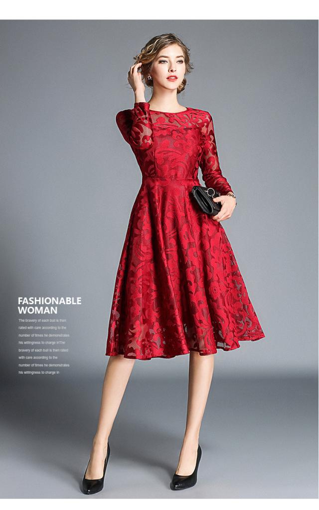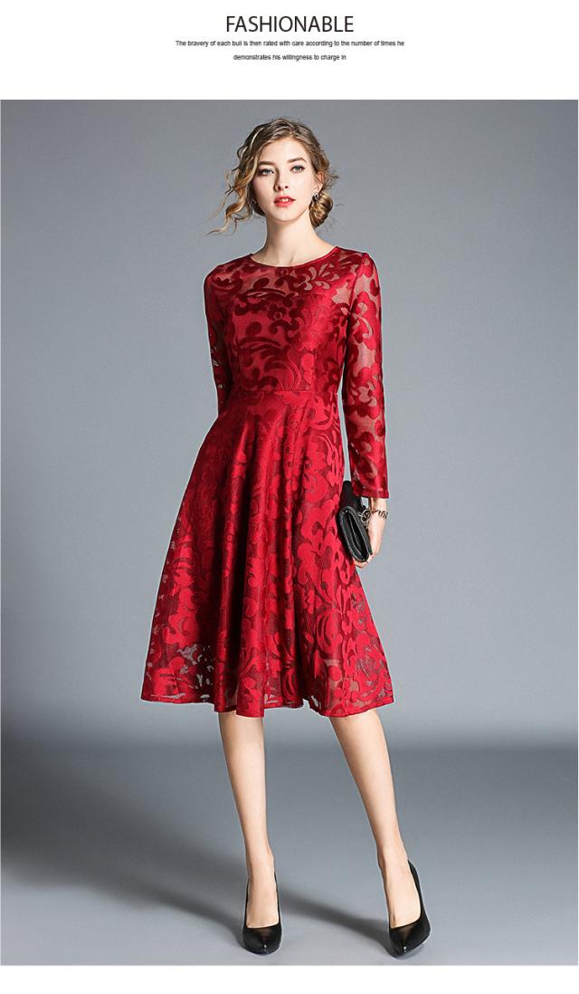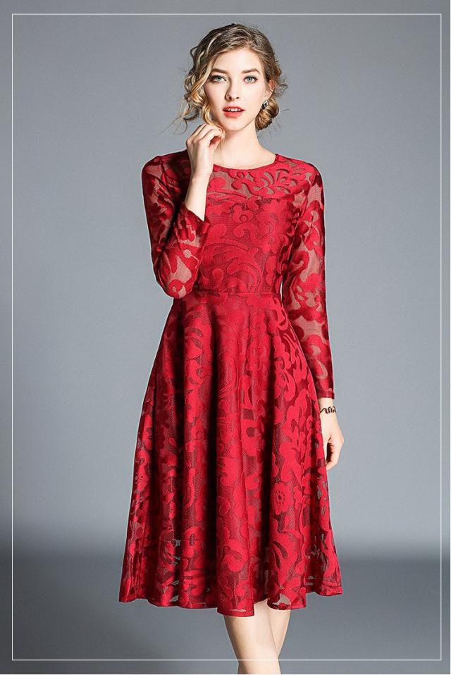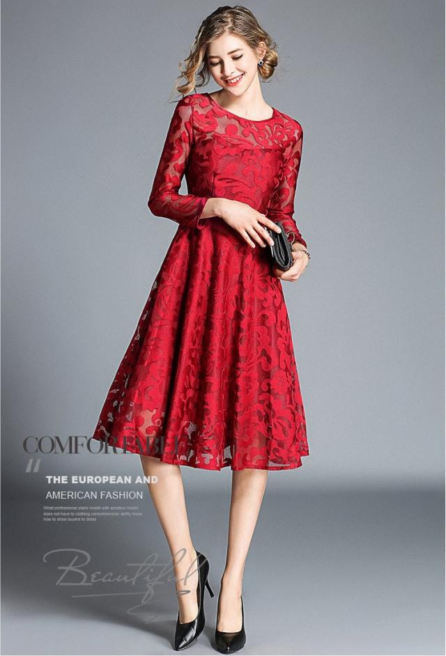 レース 刺繍 長袖 ドレス ワンピース パーティー 結婚式 二次会 女子会 謝恩会