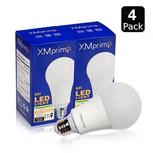 17W ( 150 Watt Equivalent ) 4 Pack A21 LED Light Bulb, 2000 Lumens 3000K Soft / Warm White, E26 Medium Screw Base, UL listed, XMprimo