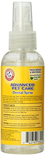 -. Binding : Misc. -. Brand : Arm & Hammer -. EAN : 0742797734118 -. Feature : Eliminates bad breath / Advanced dental spray whitens teeth / Keeping your dog's teeth in top form -. Label : Arm and Hammer -. Manufacturer : Arm and Hammer -. Model : SFB8173PS -. MPN : SFB8173PS -. PackageQuantity : 1 -. PartNumber : SFB8173PS -. ProductGroup : Pet Products -. ProductTypeName : PET_SUPPLIES -. Publisher : Arm and Hammer -. Studio : Arm and Hammer -. Title : Arm and Hammer Advanced Care Dental Spray/Fresh Breath and Whitening for Dogs -. UPC : 742797734118