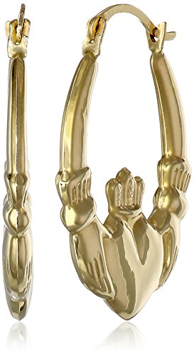 14k Yellow Gold Claddagh Creole Hoop Earrings