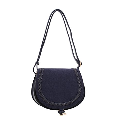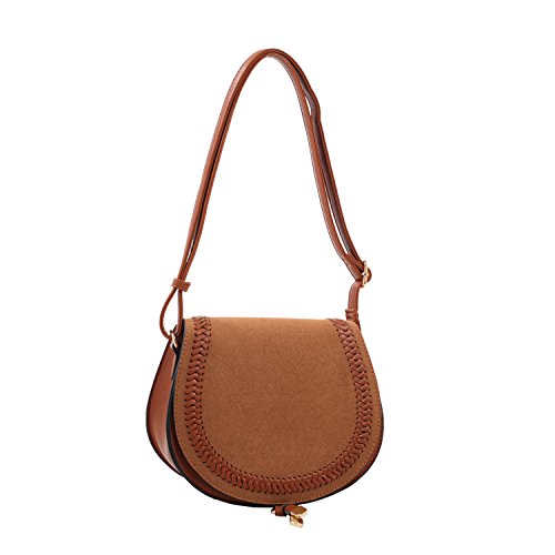 These designer handbags are part of the MKF Collection by Mia K. Farrow, they're manufactured of high quality soft faux leather giving it durability for long lasting use. This unique and lovely crossbody shoulder bag has a secure zip top and flap closure to keep your daily essentials from falling. MKF Collection handbags always keep interesting interiors in the case of our Simply crossbody shoulder bag the interior features a spacious compartment with a zippered pocket furthermore the exterior is designed with luxurious gold tone embellishment and a braided design around the front border of the crossbody bag. Not to mention that this handbag also has a very comfortable adjustable shoulder strap that adjusts up to 21 inches long. The approximate measurements of this stunning shoulder bag are 7 in H x 8.5 in W x 4 in D. Conveying this gorgeous saddle bag for women will prompt you instant style no matter where you're standing!Feature