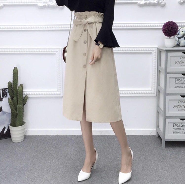 ハイウエストで、センターの縦ボタンが縦のラインを強調してスタイル良く見えます☆