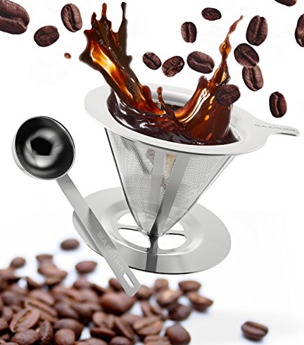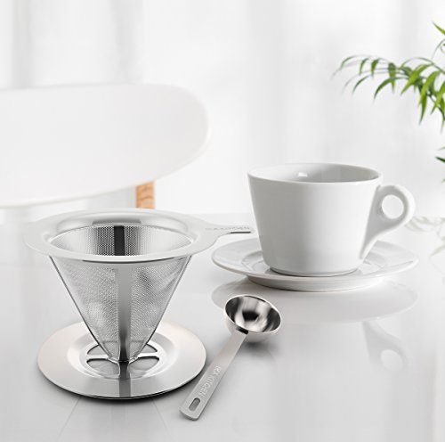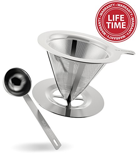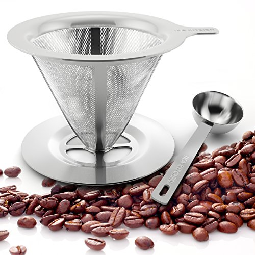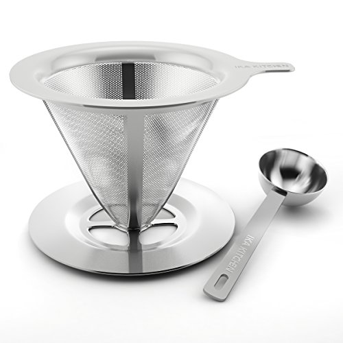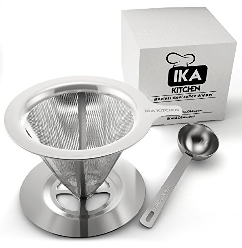 -. Brand : IKA KITCHEN -. Color : Silver -. EAN : 0643131918570 -. Feature : THE PERFECT CUP OF COFFEE, EVERYTIME: The perfect day should start with the perfect coffee. With our pour-over coffee dripper, you can enjoy a Barrista-level coffee at the comfort of your home! Enjoy having the ultimate control of how you brew your coffee by directing flow of boiling water over your grounds evenly, to extract all the flavor of the coffee for a perfect cup every time, as if it was delivered from your favorite Coffee-shop. / PROFESSIONAL GRADE MATERIALS & CRAFTSMANSHIP: Our reusable hand drip coffee maker is made of premium, kitchen grade, 18/8 304 Stainless Steel that is BPA and Chemical-free. The coffee brewer features a strong perforated layer dropper, while the inner layer works as a fine mesh, keeping all the grounds out of your cup. Our smart pour-over coffee maker, ensures that way, that you get maximum taste and keep all the essential oils of your coffee. / SMART DESIGN-BONUS SCOOP: While the technology and design of our hand drip coffee maker is sophisticated, using it is as easy as it can get. All you need is hot water and the coffee grounds of your choice. The size of our coffee dripper fits any mug up to 4 inches wide and allows you to make a single cup or up to 3 cups each time for your guests.Plus, with our Free BONUS scoop you can measure with precision how much coffee you want and make the coffee of your dreams. / BUY SMART: Disposable paper filters cost you a lot of money and deliver much poorer flavor results while they also create a mess and watse. With our clever and reusable pour-over coffee dripper however, you get a filter that will last you a lifetime and provide you with the perfect result everytime; no waste, no trial and error, maximum taste. / LIFETIME WARRANTY: Here at IKA Kitchen, we strive to provide you both with the highest quality product and with the best customer experience possible. Our coffee brewing equipment comes fully backed with a Lifetime Warranty; If you're not absolutely satisfied, you can have a swift and full refund. Click Add To Cart now, and enjoy the most risk-free purchase on Amazon. -. Label : IKA KITCHEN -. Manufacturer : IKA KITCHEN -. ProductGroup : Kitchen -. ProductTypeName : KITCHEN -. Publisher : IKA KITCHEN -. Studio : IKA KITCHEN -. Title : Clever Pour-Over Cone Coffee Dripper Stainless Steel Brewer Stand w/ Measuring Scoop Reusable Hand Drip Single Cup Coffee Maker for Slow Drip Enjoy The Perfect Pour-Over Coffee Set w/ Permanent Filter -. UPC : 643131918570