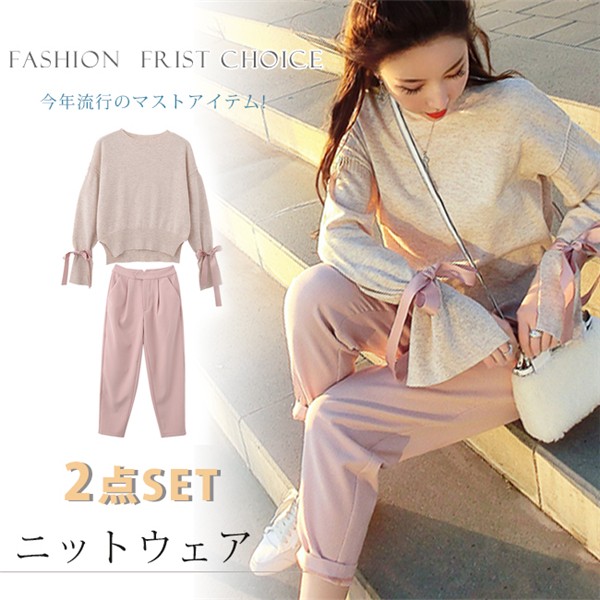 素材:ニットセット内容:セーター+ワイドパンツ『ゆるカワこなれ感♪バルキーニット』秋冬に上品であったかいニットセットアップ。ゆったりとしたシルエットが体型カバー、さらに大人可愛く演出体にフィットする柔らかな生地がボディーラインを美しく見せてくれる◆ 商品写真はできる限り実物の色に近づけるよう加工しておりますが、お客様のお使いのモニター設定、お部屋の照明等により実際の商品と色味が異なる場合がございます。 ◆ 実寸(平置きした状態でメジャーで計測したもの)とヌード寸(タグについているおおよそ●cmの方対象を表すサイズ表記)とは測り方が異なります為、サイズ比較対照となりません。※品名【即納】商品以外で、メーカーから取り寄せを致しますので、通常8-10日間前後お時間を頂いております。※メーカー生産都合、休日等により前後する場合がございますので、予めご了承くださいませ。※当店では複数店舗で在庫を共有しており、システムで在庫の調整を行っておりますが、アクセス集中等により在庫数の更新が間に合わず、実際の在庫数値との誤差が生じる場合がございます。