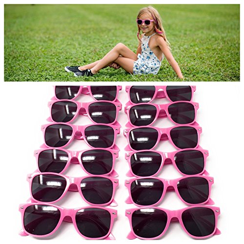 Pink Kids Sunglasses (12 Pack) – 100% UV Protection for The Beach, Pool and Outdoor Activities - Reduces Glare and Eye Strain - Wayfarer Style Glasses - Best For Party Favors For Boys And Girls