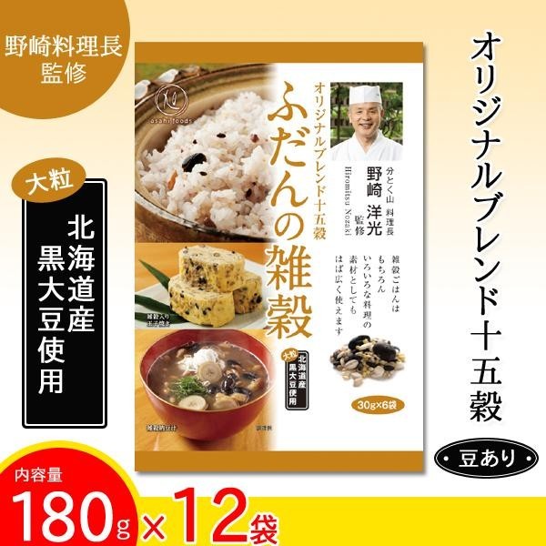 | 雑穀を白米と炊き込むだけではなく、野菜や肉のように、いろいろな料理に調理食材として使っていただきたい。そんなコンセプトでブレンドしました。麻布の和食名店「分とく山」料理長、野崎洋光監修。北海道産大粒黒大豆を配合した、十五穀ブレンドです。 |
