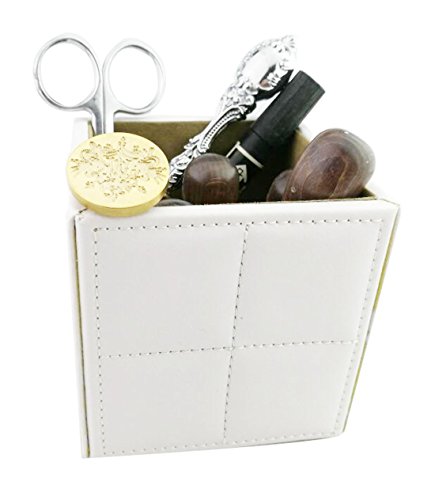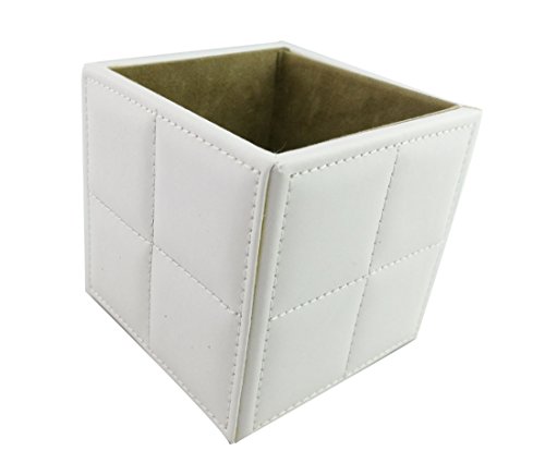 Fashion PU Leather Square Pen/Pencil/Remote Control Holder Desktop Organizer Storage Box Desk Organizer (White)