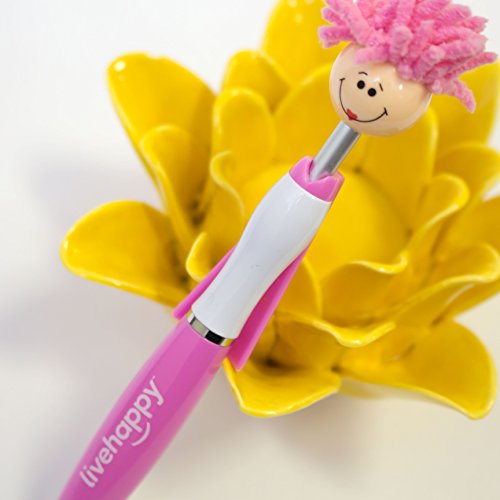 -. Binding : Office Product -. Brand : Live Happy -. Color : Pink -. EAN : 0768855832053 -. Feature : 6 1/4" long, click-action mop topper cape click pen. Great, fun pen for kids, women and men of all ages! / Pink colored pen with black ink and a medium-sized ballpoint. / Long-lasting microfiber hair functions as a screen cleaner. / P.R.Inted with the Live Happy logo in white these mop top stylus pens make a great gift for your family, friends or coworkers! -. Label : Live Happy -. Manufacturer : Live Happy -. MPN : Live Happy -. PackageQuantity : 1 -. PartNumber : Live Happy -. ProductGroup : Office Product -. ProductTypeName : WRITING_INSTRUMENT -. Publisher : Live Happy -. Studio : Live Happy -. Title : Live Happy Mop Topper Screen Cleaner Pen - Fun Pen For Kids and Adults (Pink Colored Pen with Black Ink) -. UPC : 768855832053