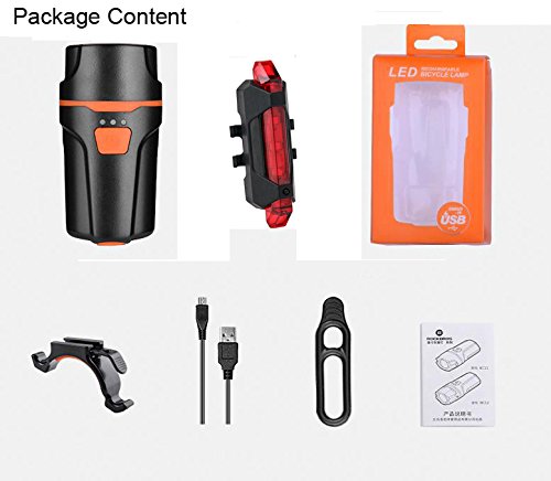 Package includes 1× Rechargeable Bike Front Light (Battery Included) 1X Micro USB Rechargeable Rear light 0 |