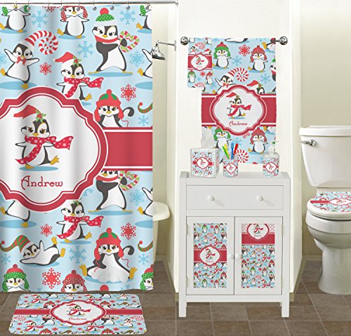 Penguins as Santa's little helpers? Everyone can agree this fun design of penguins clad in Santa hats and having a grand ole time up in the North Pole is absolutely adorable. The ribbon and label are red, and the label includes a little penguin, ready for the holidays, along with your name or text for personalization.