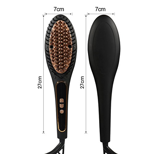 - Safe and user-friendly design - The heated comb teeth have a plastic tip and the entire heated surface is surrounded with hard plastic bristles that protect you from the burn. With a temperature lock function, the hair straightening brush will lock the selected temperature, and automatically turn off the function after 30 minutes.