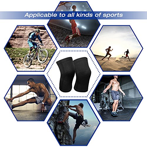 - Outdoor Activity Knee Sleeve: Designed to guarantee seamless movement during running,jogging,fitness,yoga,basketball,volleyball, soccer,hiking, skiing,tennis,cycling and post knee injury recovery. Note: check size chart before ordering (5rd image from the top left)