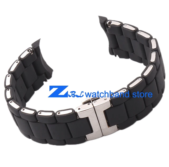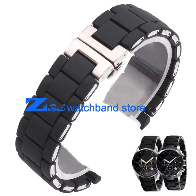 | [해외]고무 손목 시계 스테인레스 스틸 블랙 실리카 젤 AR5858 남성 23 미리메터 AR5868 여성 20 미리메터 시계 스트랩 손목 밴드 |