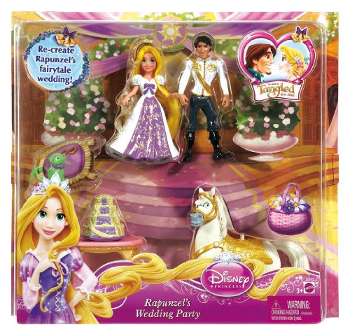 -. Binding : Toy -. Brand : Mattel -. EAN : 0746775140700 -. Feature : Inspired by the hit Disney animated film, Tangled / Rapunzel is marrying her beloved Eugene / Girls will love recreating the couple's special day / Dressed in elegant wedding attire and joined by their friends Maximus and Pascal / Includes Rapunzel and Eugene dolls, Maximus, Pascal, wedding cake and more -. IsAdultProduct : 0 -. Label : Mattel -. Manufacturer : Mattel -. Model : X5113 -. MPN : X5113 -. PackageQuantity : 1 -. PartNumber : X5113 -. ProductGroup : Toy -. ProductTypeName : TOYS_AND_GAMES -. Publisher : Mattel -. Studio : Mattel -. Title : Disney P.R.Incess Rapunzel Wedding Party Set -. UPC : 046775140701 -. Warranty : 1 year warranty against manufacturer defects