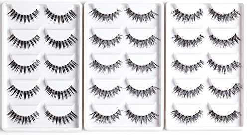 AJOY 15 Pairs Fake Eyelashes Set, Multipack Demi Wispies(3 Styles & Packs) Natural False Eyelashes Strip Bulk, R-15P