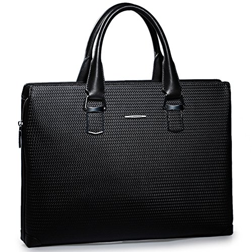 Structure: Main section with a top zipper closure/Magnetic Snap, One Interior Slot Pocket, one cell phone holder, one ID card holder,two pen holder, a slot zipper pocket. Double tote handles. It briefcase with laptop compartment can hold 14" laptops or less.