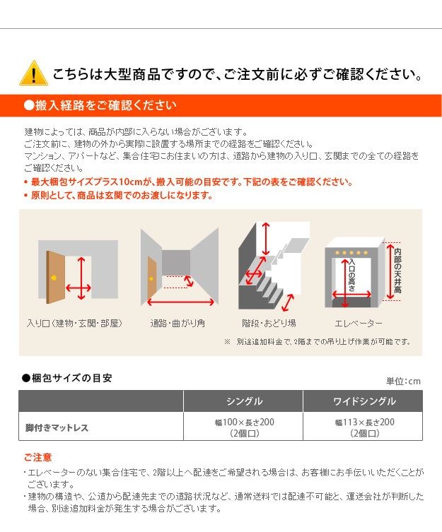 ●商品サイズと設置場所、搬入経路のご確認をお願いいたします。