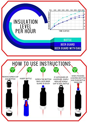 Studio : ModernHome.Store Publisher : ModernHome.Store Product Description The Beer Guard is the perfect travel buddy because it keeps your beer cold to enjoy it later. Imagine, simply store your beer inside the Beer Guard, screw on the cap and travel where you need to go to ensure it stays colder for longer. This beer bottle cooler is very easy to travel with, and can clip onto bags, belts, backpacks and more with either the carabiner or the carry bag - that also improves the insulation further. The Beer Guard also comes with a detachable LED collar that will make it visible at night with a bright blue LED light, and with a carabiner/bottle opener - attached so you never lose it. Now you can keep your beer cold but also look discreet and stylish doing it. Product Specification: - Stainless steel beer guard cooler with black matte powder coat finish, with plastic screw on cap and stainless steel screw on bottom - Interior Neoprene liner, with round bottom liner - The Beer Guard can keep content optimally cold for 60 minutes - Blue collar with blue LED light - battery operated, snap buckle and D-ring - Neoprene carry bag, with buckle, fits Beer Guard - BPA free product - Stainless steel bottle opener, removable - 1⅞" Long blue carabiner - LED is not waterproof. - LED light is removable from collar - Exterior dimensions: 10.4" L x 2.75" DIA (at base) x 1.75" DIA (cap opening) -Interior dimensions: 7.75" L x 2.5" DIA (at base) - Weight: 4 oz. (without bag) 0 |