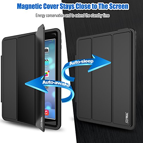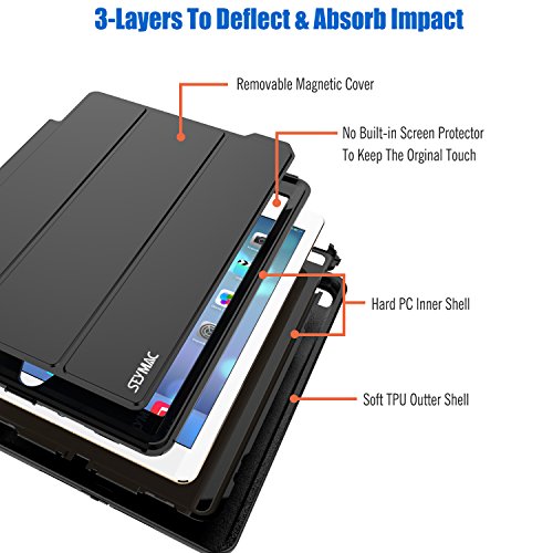 iPad Air 2 Case Heavy Duty Plastic+Soft TPU Full Body Shockproof, Smart Cover With Auto Sleep Wake Magnetic Synthetic Leather Stand Feature Case for iPad Air 2 (Black)