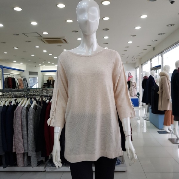 칠부소매 라운드 니트 티-CA8S3-WSL820-베이지