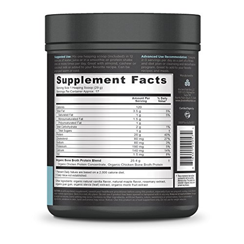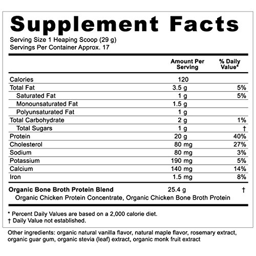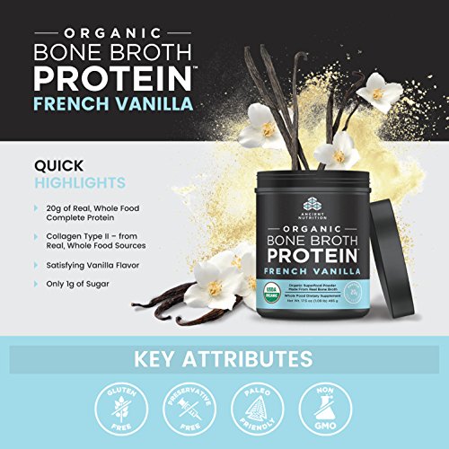If you want the ultimate low-carb, low-sugar superfood... then this could be the most important protein supplement you'll ever purchase! Organic Bone Broth Protein French Vanilla is an amazing new protein supplement that allows anyone who loves bone broth to enjoy the benefits of real, Certified USDA Organic homemade bone broth without spending hours boiling bones in your kitchen. For as long as humans have been cooking food over fire, bone broths ? chicken, beef, turkey, fish and more ? were staples in the traditional diets of every culture. And for good reason. Of course, a balanced diet and a healthy lifestyle are critical. But Organic Bone Broth Protein French Vanilla is something we should all consider adding to our diet for these benefits ? benefits that are incredibly hard to find in just one product. If you're in search of a hearty and savory protein without sacrificing nutrition, Organic Bone Broth Protein French Vanilla is for you! 0 |